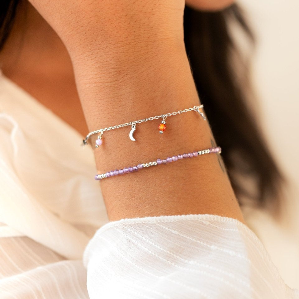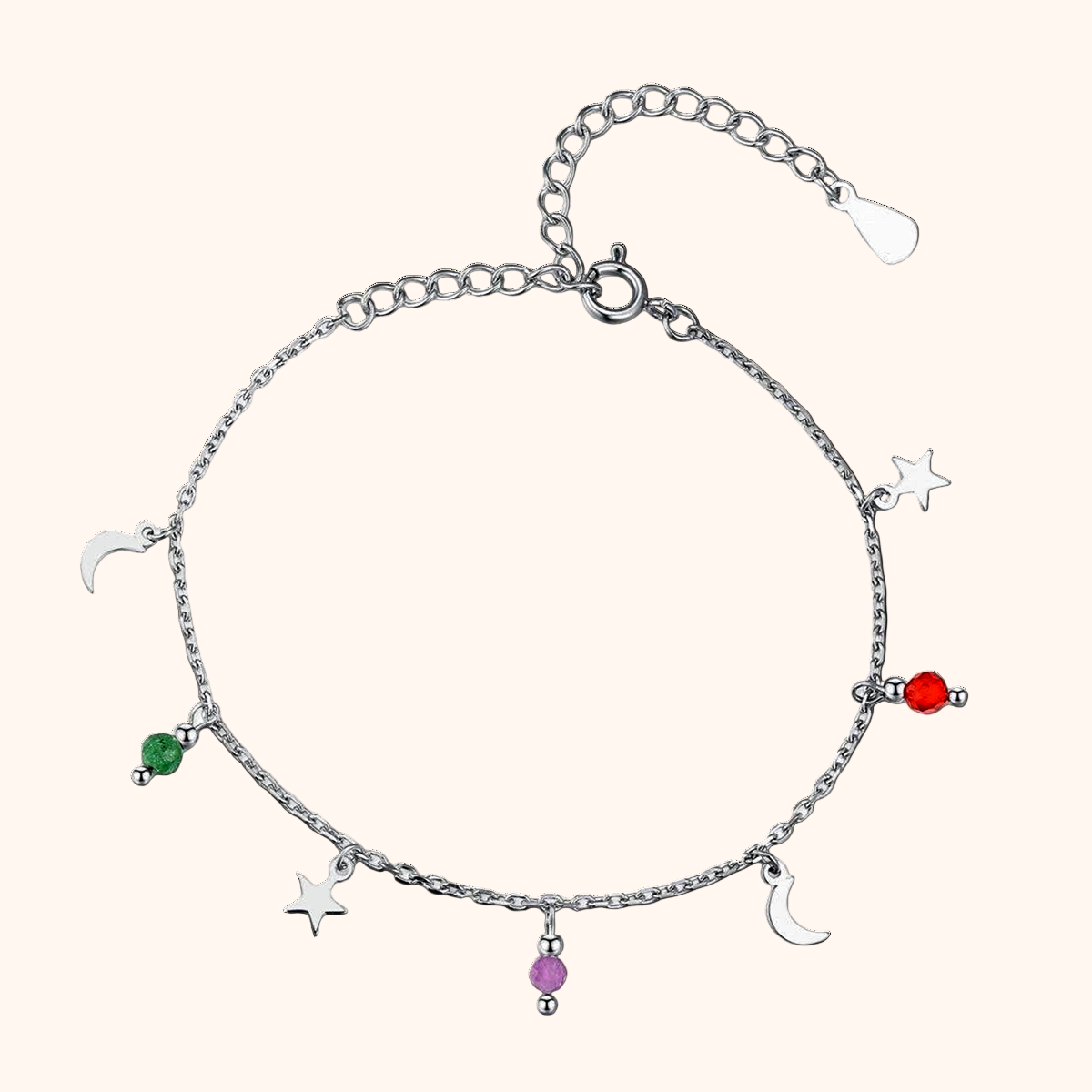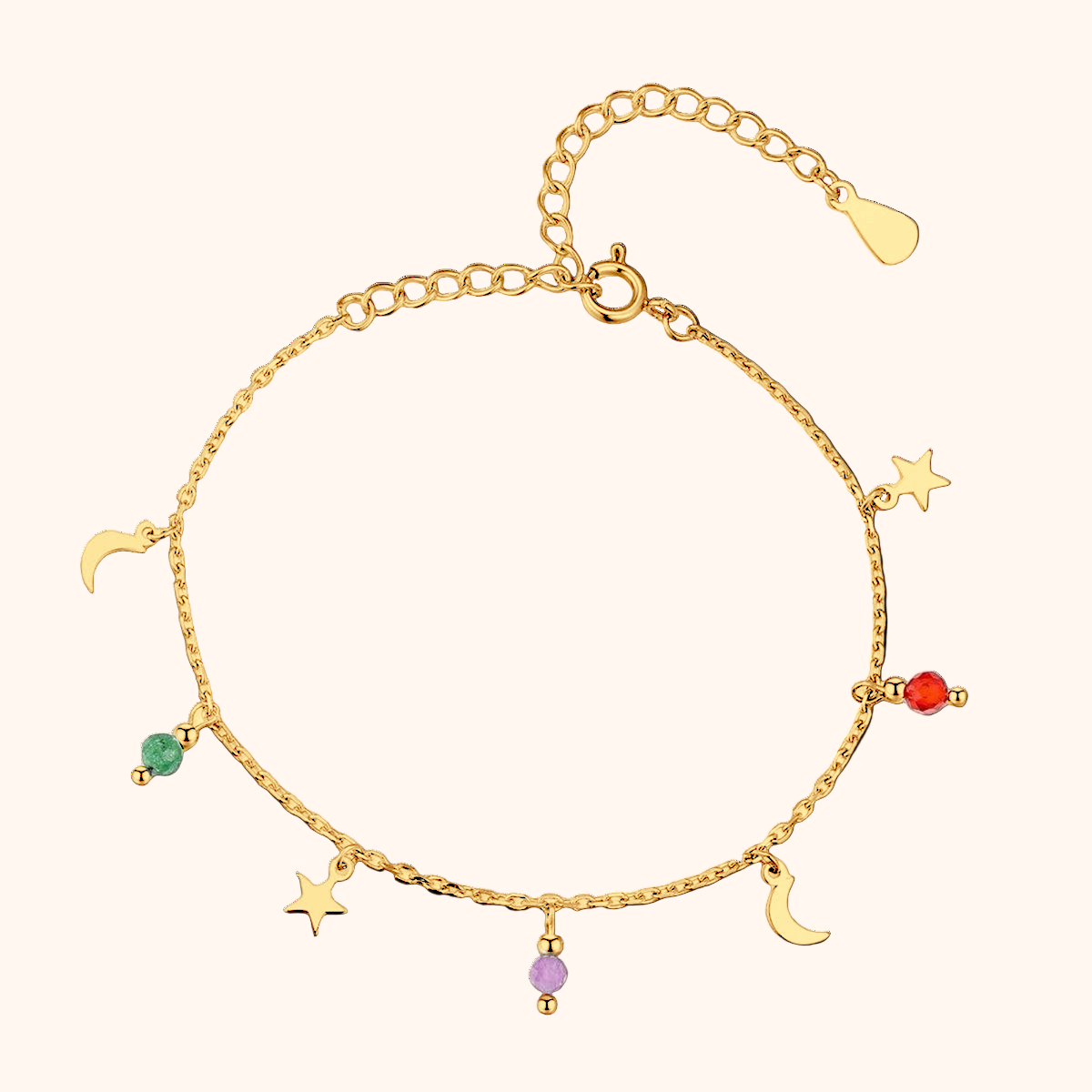 The Sidereal Bracelet brings the magic of the night sky to your wrist, with delicate charms of stars, crescent moons, and colourful beads in vibrant tones. A playful yet elegant piece for dreamers and stargazers.