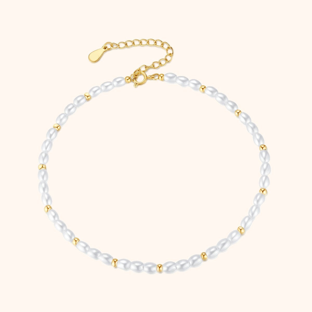 The Nuka Anklet combines delicate elongated white pearls with golden beads for a look that’s both refined and radiant. A perfect piece to bring elegance and light to your summer style.