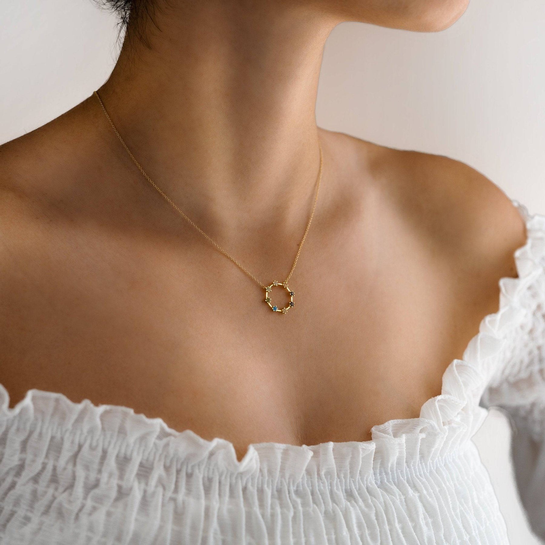 Whether worn alone for a delicate sparkle or layered with your favourite chains, the Colour Circle Necklace brings a joyful touch to any outfit.