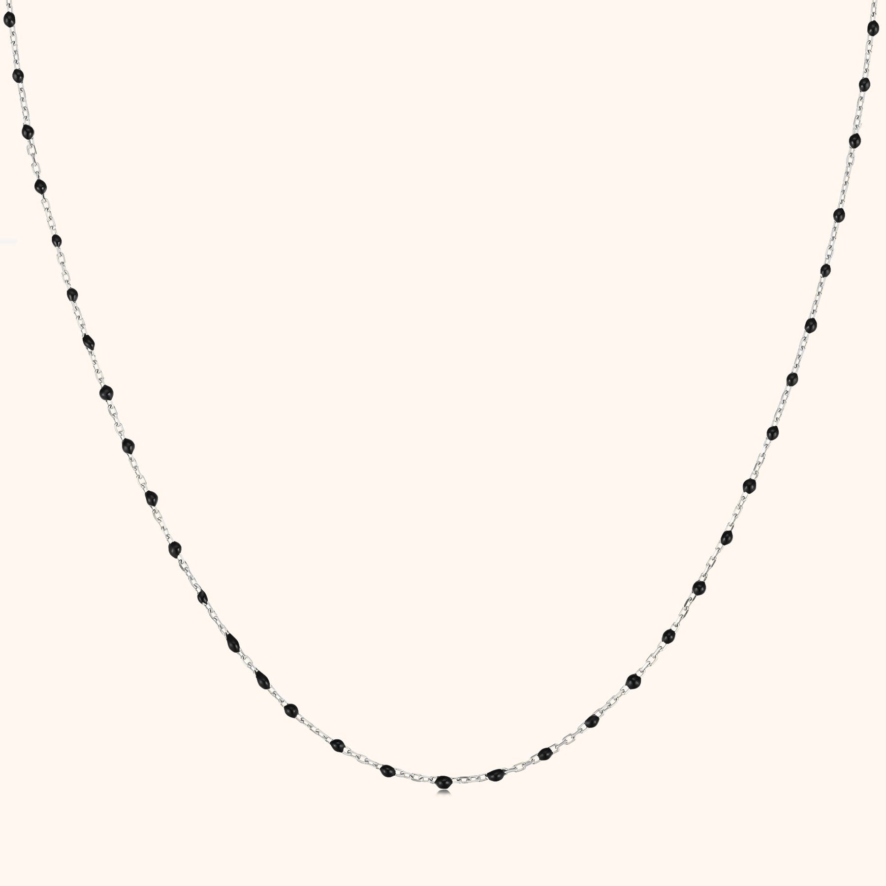 The Mist Necklace brings effortless sophistication with its delicate chain adorned with black beads. Perfect for layering or wearing solo, it adds a bold yet minimal touch to any outfit.