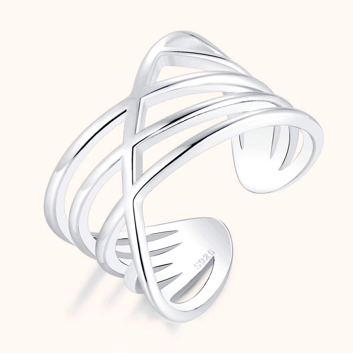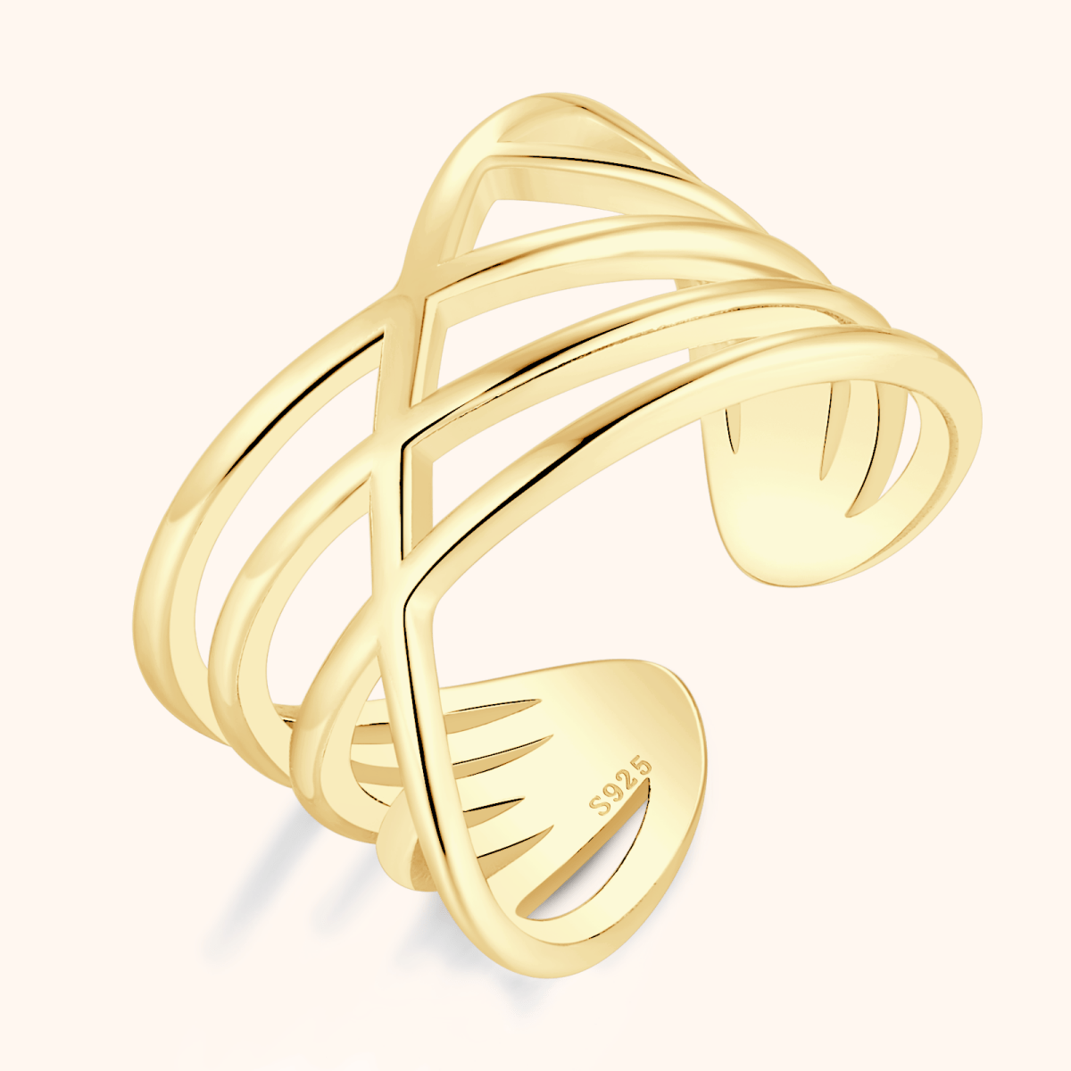 The Belle Ring features three sleek, interlaced bands that create a light, fluid silhouette. A modern piece that adds sophistication and originality to any look.