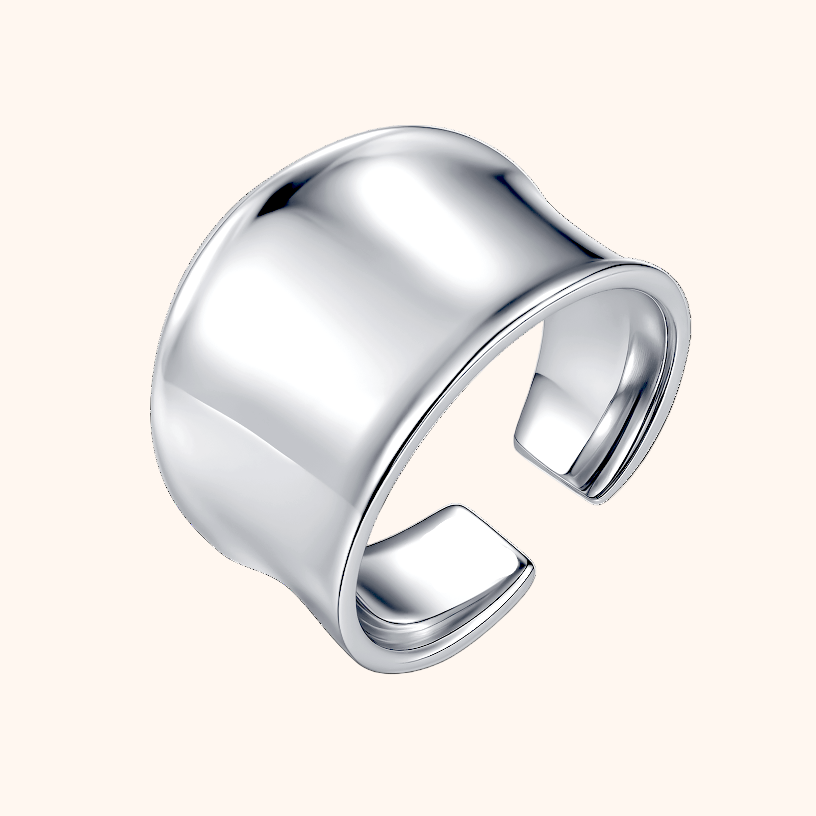The Cave Ring is a striking statement piece with a wide, asymmetrical silhouette that hugs the finger beautifully. Its smooth, mirror-polished finish captures light from every angle, adding instant elegance and confidence to your look.