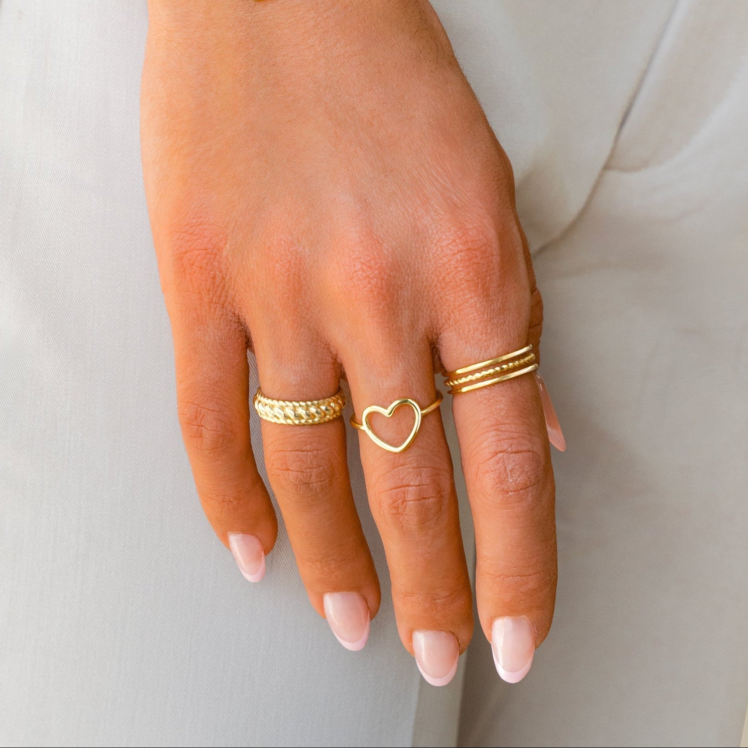 The Queen Ring combines minimal design with delicate decorative twists — a modern piece that adds a refined yet effortless touch to your style. Elegant on its own or stacked with others, it’s the definition of understated sophistication.