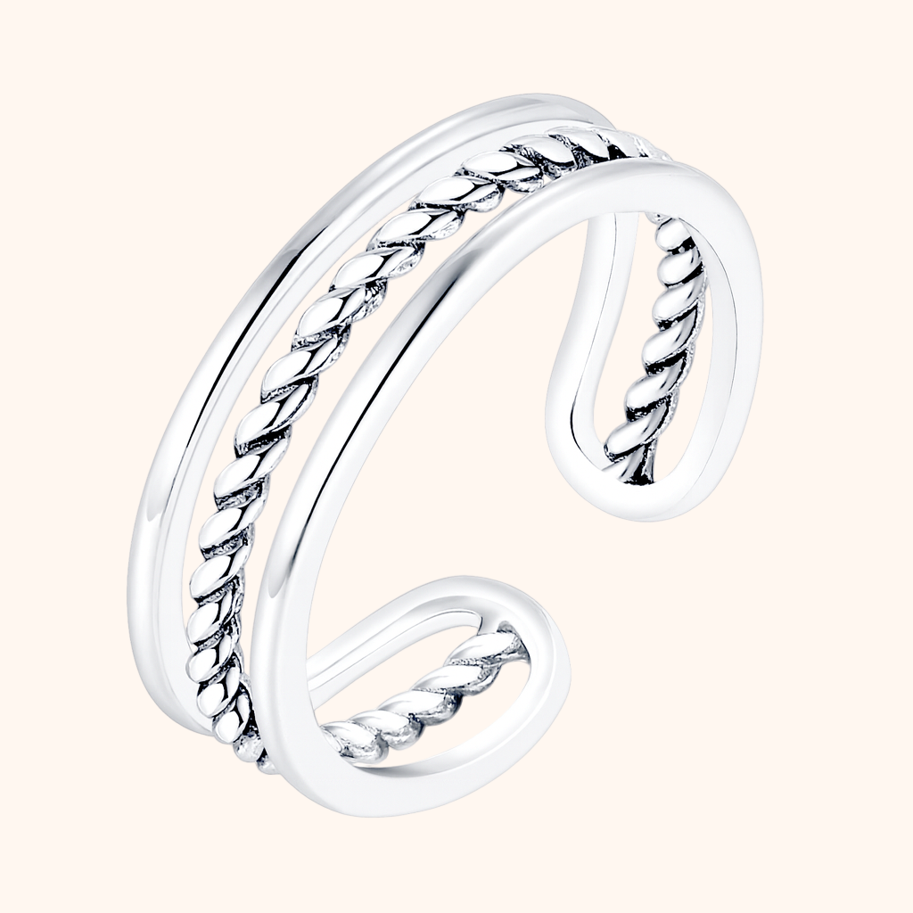 Made from premium 925 sterling silver, this adjustable ring is hypoallergenic, tarnish-resistant, and available in both silver and 18K gold-plated finishes. Designed to fit comfortably while maintaining its shine over time.