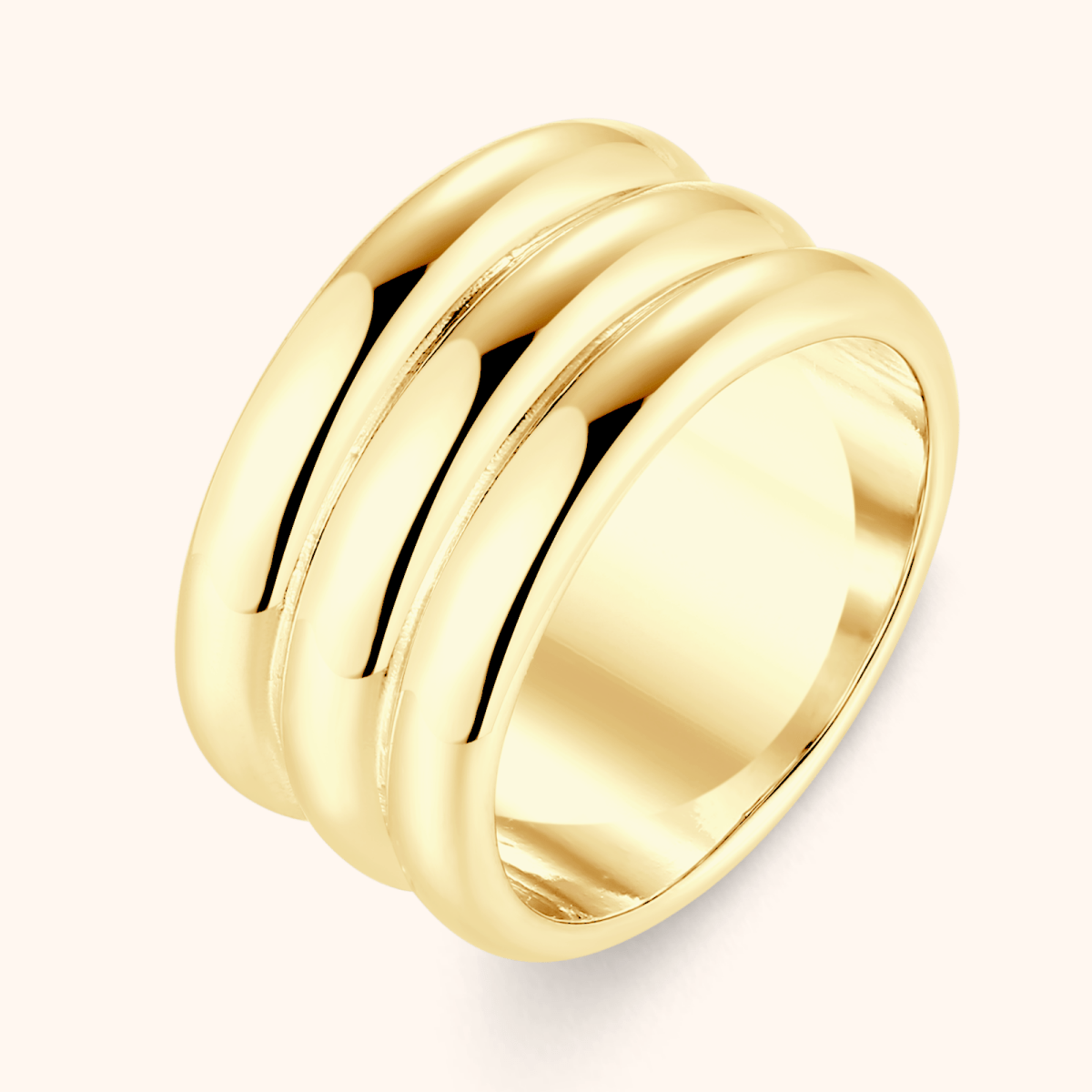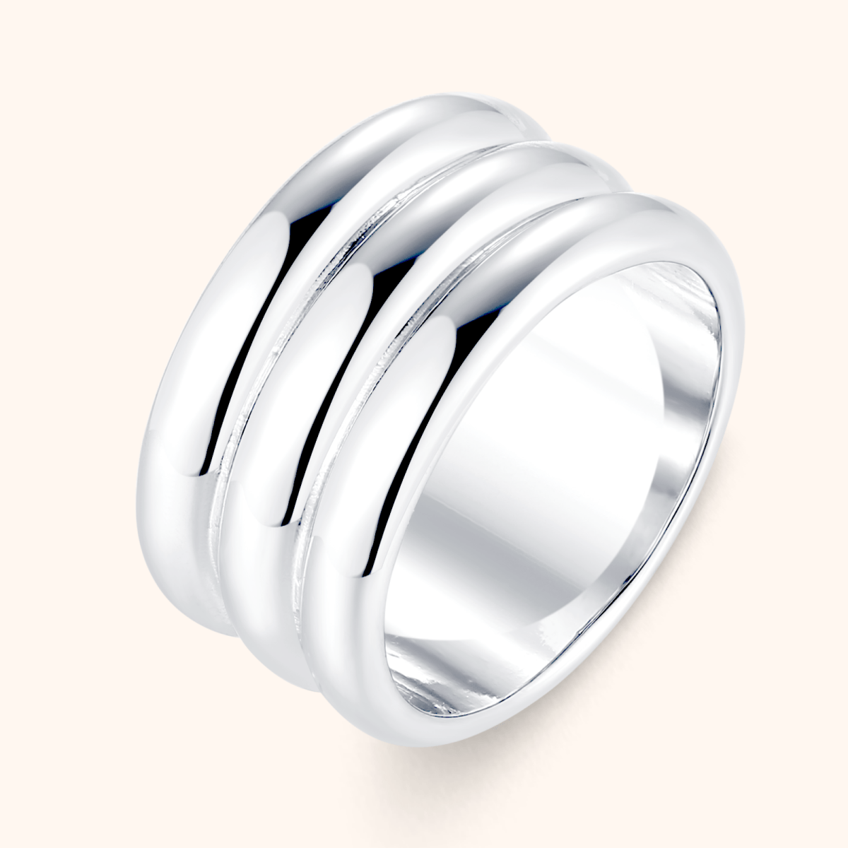The Roman Ring features three bold, polished bands that create a timeless and sophisticated silhouette. A design that radiates elegance, power, and individuality — made for those who embrace their unique style.