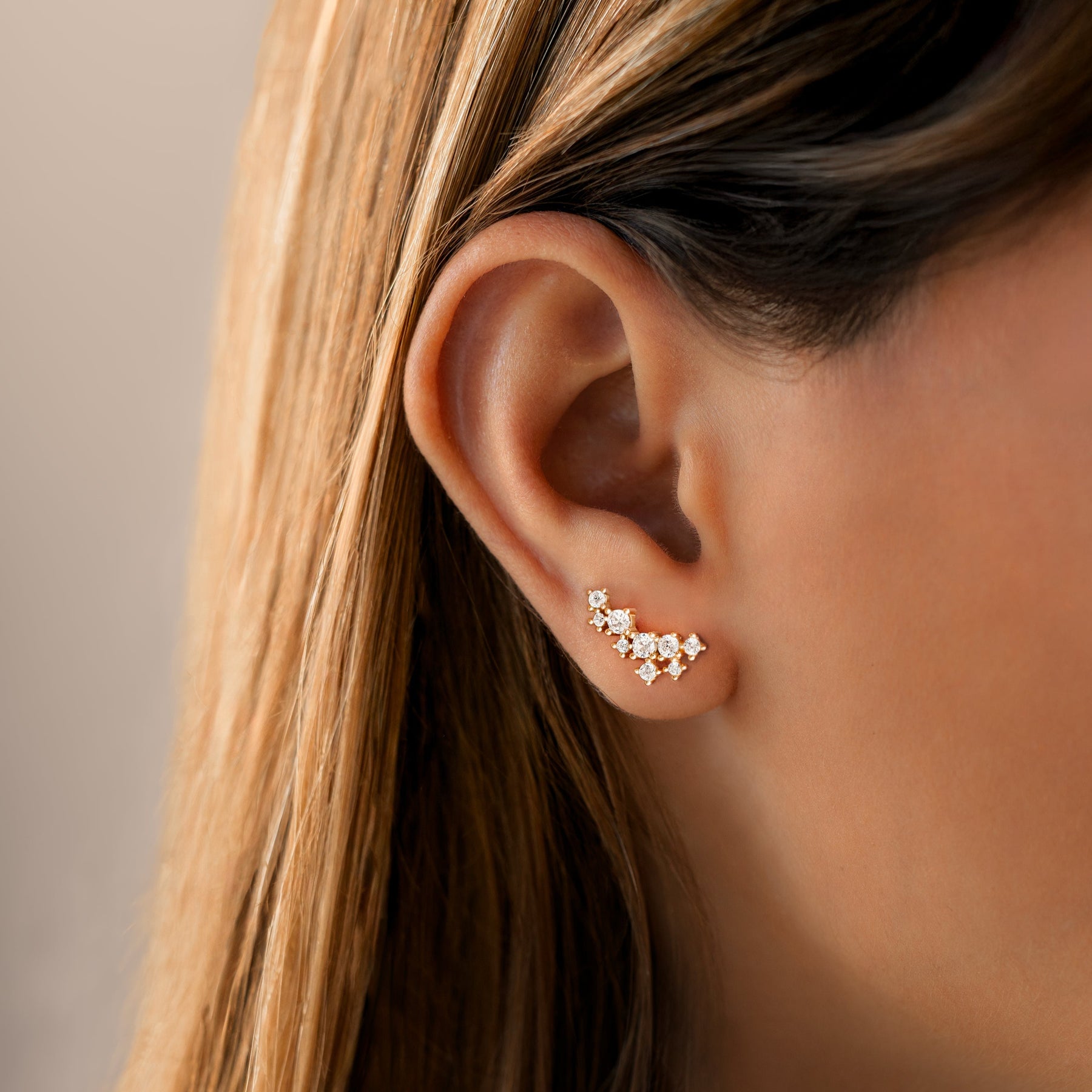 The Coral Climber Earrings are designed to elegantly trace your ear, featuring multiple sparkling zirconia stones that resemble delicate ocean corals. A truly eye-catching piece that adds sophistication and originality to your look.